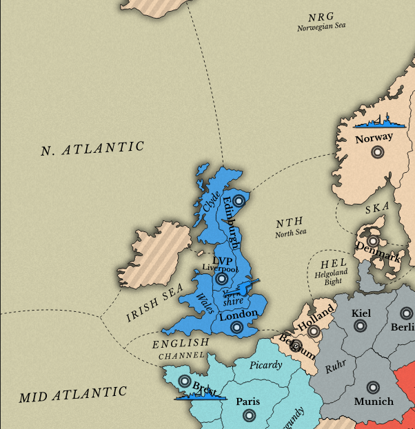 In some ways this is no different to the Leith Opening. With the Leith Opening, England orders A Lpl-Edi, presumably because the plan is to convoy the army to the continent – Belgium or Holland – or Scandinavia – Denmark (yes, I know Denmark isn’t a Scandinavian country but it’s known as such in Diplomacy) or Norway.